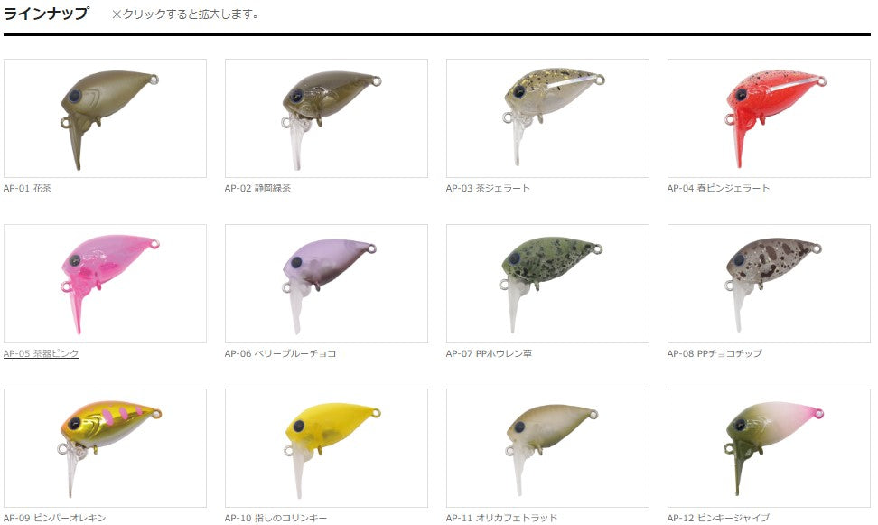 巻き下げ巻き上げが自由自在の小粒クランク。遠投性能に優れ、表層からボトムまでを素早くサーチすることが役割。角度を付け下に伸ばした特長あるリップは、スローで巻けば巻き下がり はや巻きすれば巻き上がる性能を与えロッド操作を駆使してコントールすれば表層バジングやボトムシェイクにも適応可能です。そして、カウントダウンしてリーリングスピードを一定にすれば、決めたレンジを正確に泳がせる事もでき、スプーンを操作するテクニックと同じ技が繰り広げられます。