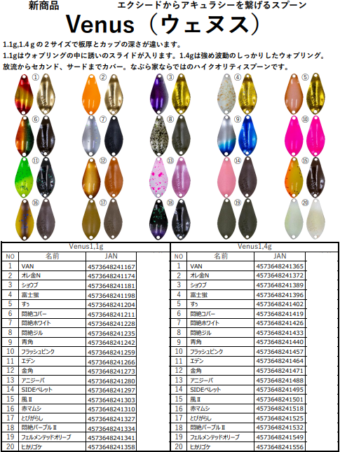 1.1gはウォブリングの中に誘いのスライドが入ります。1.4gは強め波動のしっかりしたウォブリング。