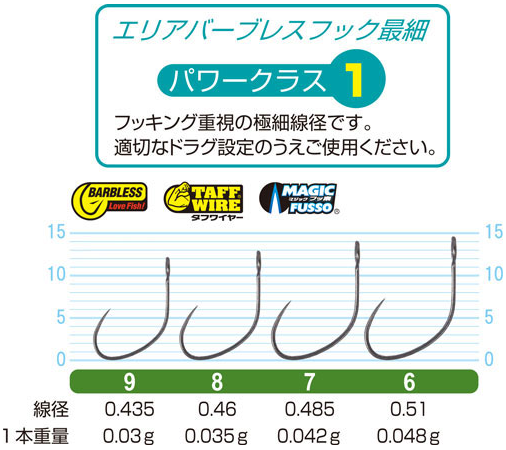 ※フッキング重視の極細線径です。適切なドラグ設定のうえご使用ください。
