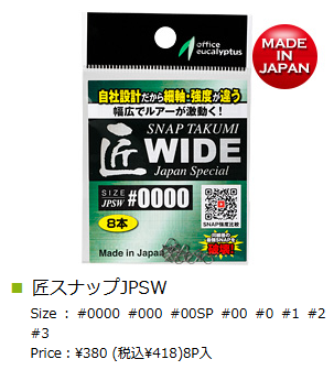 ルアーの動きを妨害しないワイド形状。スプーンやクランクにコレ。1g以下のスプーンには#0000、小型クランクには#000、放流スプーンやフルサイズクランクには#00がオススメです。